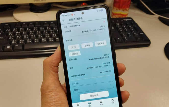 台科電雲端儲值系統平台,從11月份起開放行動支付收款功能,房客可以在【住戶用電管家APP】上直接選擇行動支付付款儲值,系統會自動收款儲值,房東再也無須手動儲值,不用擔心三更半夜接到儲值的電話,房客也不用煩惱餘額不足時找不到房東儲值。