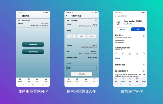 設定完成後,您的房客所下載的住戶用電管家APP中,就會出現【行動支付儲值】選項。